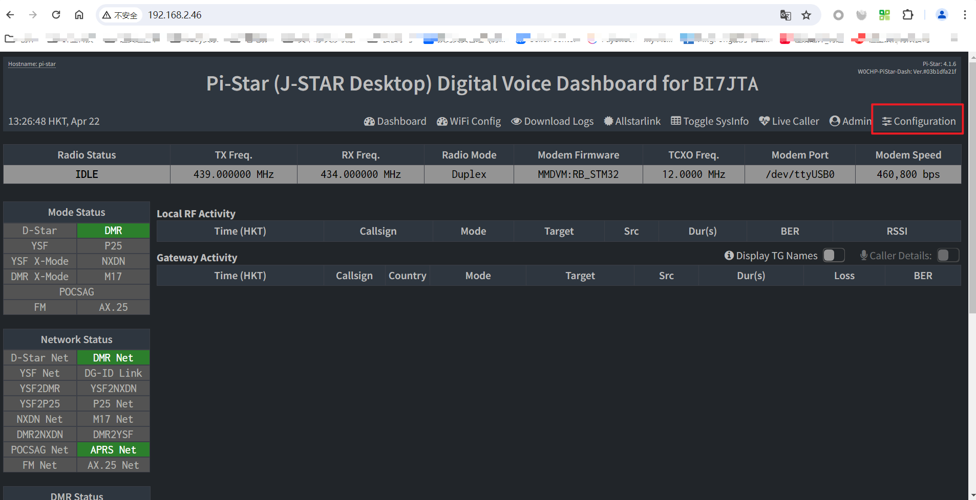 http://IP:80 J-Star(Pi-Star/WPSD)Dashboard,BI7JTA Customized。